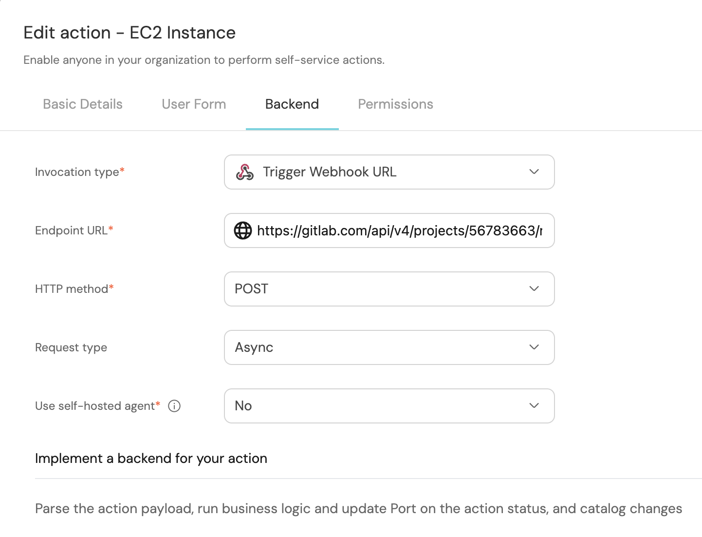 In the following guide, you are going to create a self-service action in Port that executes a GitLab pipeline to create an EC2 Instance in AWS using Terraform templates.