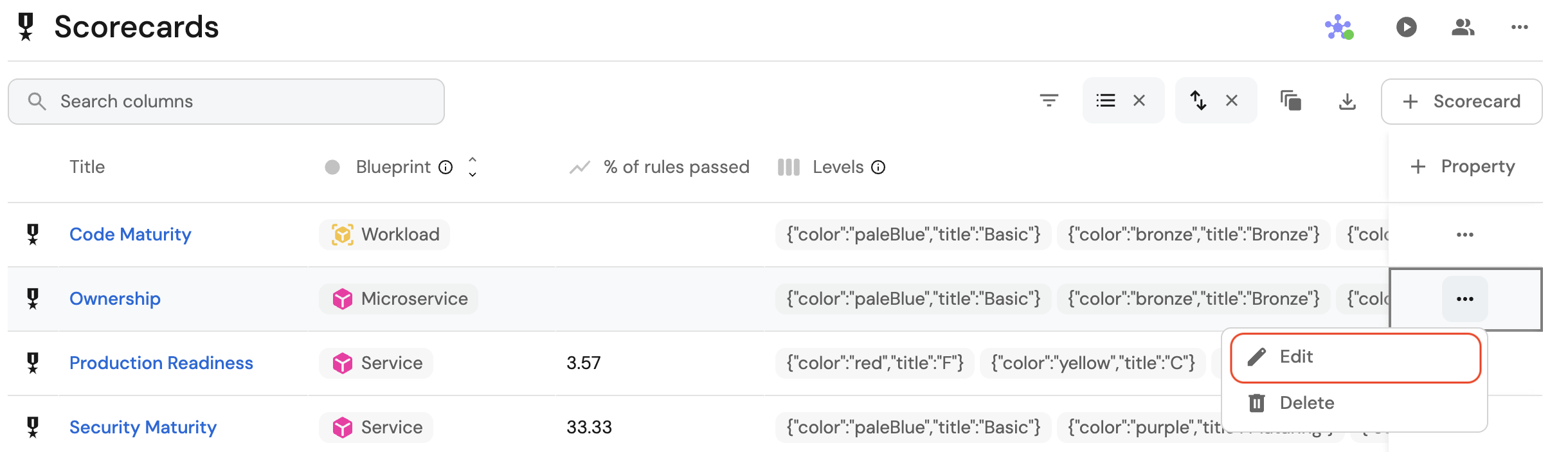 2. Expand the relevant blueprint, and click on the Scorecards tab.