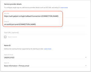 • ACS URL - https://auth.getport.io/login/callback?connection={CONNECTION_NAME}